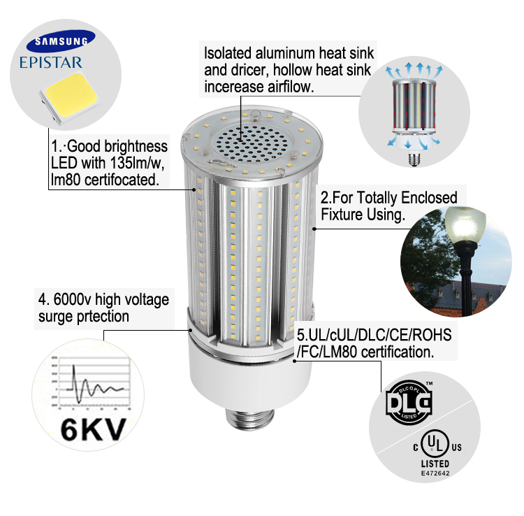 UL DLC Approved High Bay LED Bulb AC100-300V 5940lm Samsung 2835smd LED Corn light